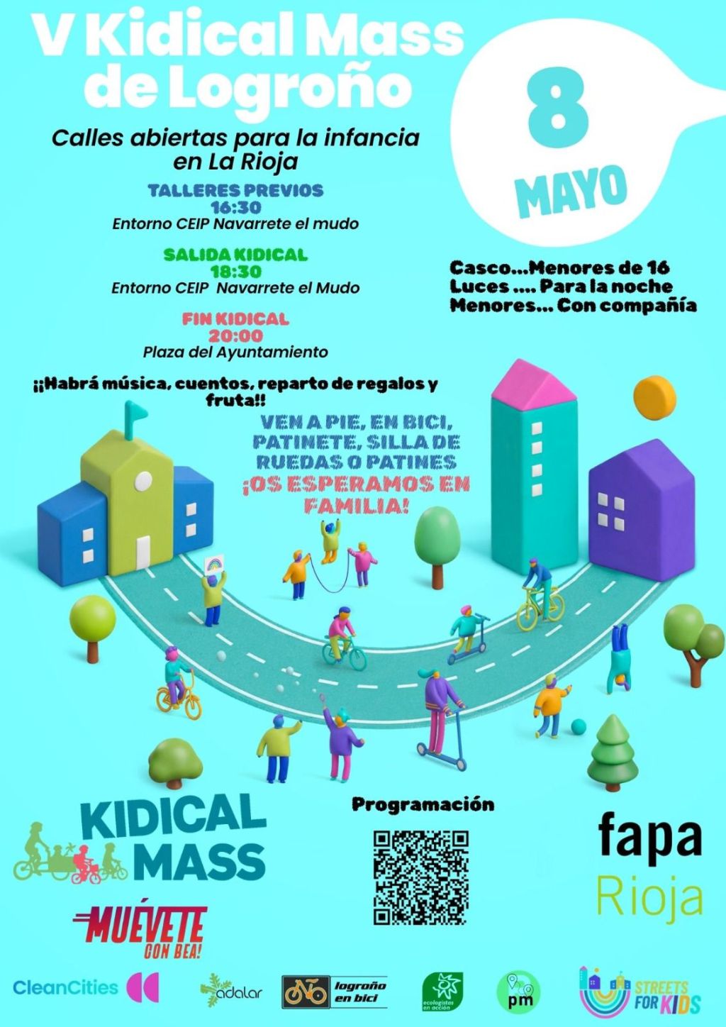 Buenos días AMPAS y familias: El viernes, 8 de mayo de 2026, FapaRioja , en colaboración con Ecologistas en Acción, ADALAR, PMLR, LEB y Muévete con Bea! se suma a la campaña internacional #StreetsForKids para reivindicar entornos e itinerarios escolares seguros y saludables. Más aún después de los resultados de medición de calidad del aire en entornos escolares de Logroño, disponible aquí: https://faparioja.org/2026/04/20/informe-calidad-del-aire-en-colegios-de-logrono/